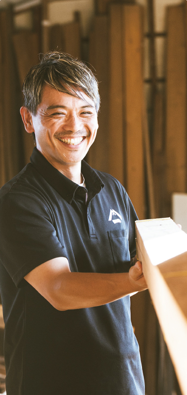 彼は材木屋の家に生まれながら、新卒で大手ハウスメーカーの世界へと飛び込んだ。関西の本部勤務を含め、約20年にわたり設計、営業、現場監督という主要職種をすべて経験。そこは仕様が明確で品質管理が行き届いた、多くの人にとって「いい家」の定義が分かりやすい、安心できる現代の家づくりの最前線だった。しかしその一方で、コストや品質の均質化を優先するため、その土地の木材を使う「地産地消」を取り入れることは難しいという現実も、彼はその目で見てきた。